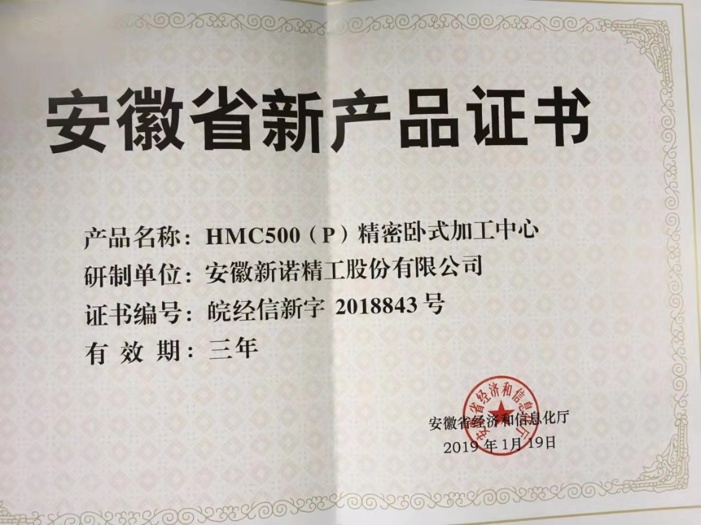 產(chǎn)品證書-HMC500(P)精密臥式加工中心