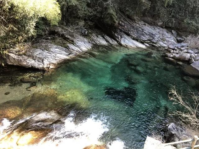 “人間瑤池仙境”的翡翠谷,素有“天下第一”的美譽(yù)。大大小小的碧玉彩池,如瑪瑙翡翠,奇特極清。四周綠竹紫巖倒映,葉影浮搖,晴天艷日之下,霓虹游動(dòng),媚態(tài)萬(wàn)千。