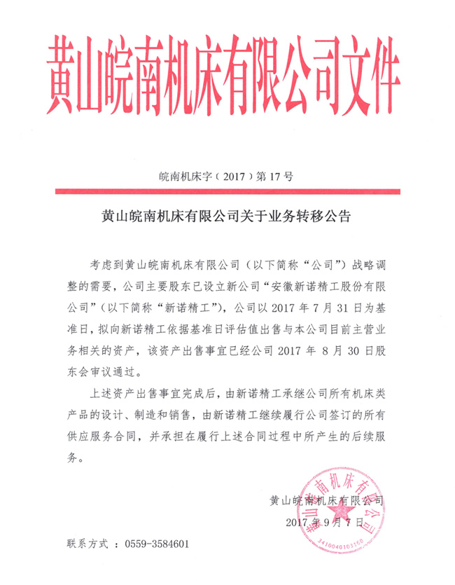 上述資產(chǎn)出售事宜完成后,由新諾精工承繼公司所有機(jī)床類(lèi)產(chǎn)品的設(shè)計(jì)、制造和銷(xiāo)售,由新諾精工繼續(xù)履行公司簽訂的所有供應(yīng)服務(wù)合同,并承擔(dān)在履行上述合同過(guò)程中所產(chǎn)生的后續(xù)服務(wù)。